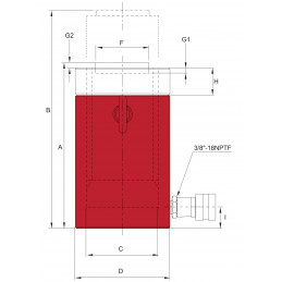 BVA Hydraulics cylinder med låsmutter för säkerhet när lasten skall stå en längre tid. Överströmningshål så att inte kolven kan pumpas ut. Gul varningsmarkering när maximal slaglängd är uppnådd.