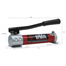 BVA Hydraulics 2-stegs Handpump med 0,35 liters tank. Passar för enkelverkande cylindrar eller verktyg med en max. oljevolym på 350 cm3. Tank i aluminium för låg vikt. 2-stegs pump som underlättar för operatören att p