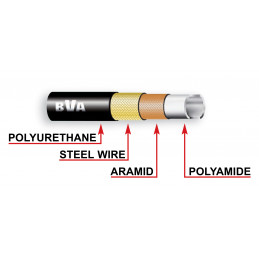 Slang överstiger DIN 20022-1 & SAE 100R9 specifikationer Gummiböjningsbegränsare. Högt arbetstryck. Optimal flexibilitet. Lättvikt. Temperaturområde: från -40 °C upp till +100 °C.