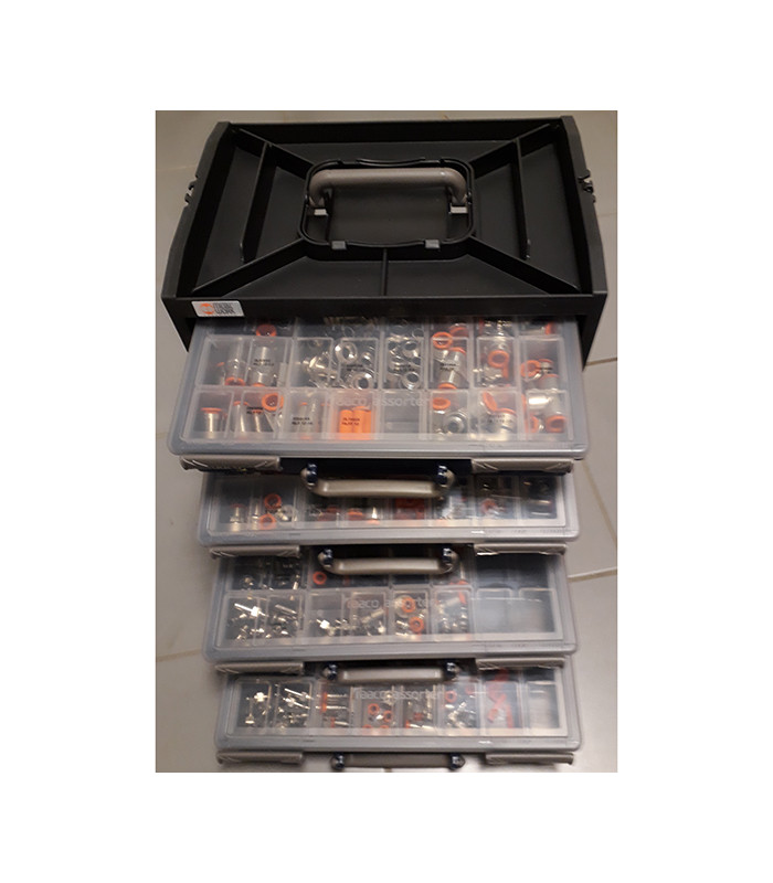 Handy-Box med 4 lådor, totalt 60 fack med pneumatik-kopplingar.