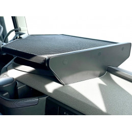 MAXI-Lastbilsbord - SCANIASnyggt och funktionellt, ger stor yta för förvaring av dina behov. Bordets ben återger exakt konturen av panelens yta, så bordet ligger extremt stabilt och den 7 mm höga kanten med halkskyddsmattan säkerställer att din dator, iPad eller mobil förblir säker und