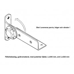 Fällsitsbeslag, gulkromaterat, med justerbar fjäder. Levereras parvis, höger & vänster.