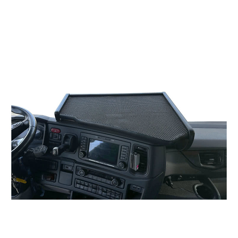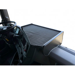MAXI-Lastbilsbord - SCANIASnyggt och funktionellt, ger stor yta för förvaring av dina behov. Bordets ben återger exakt konturen av panelens yta, så bordet ligger extremt stabilt och den 7 mm höga kanten med halkskyddsmattan säkerställer att din dator, iPad eller mobil förblir säker und