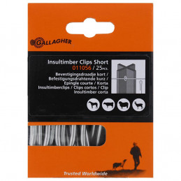 Vi rekommenderar användandet av art.nr. 011056/024698 för fixering av trådar på en Insultimber stängselstolpe eller en Gallagher Eco-stolpe. Använd art. nr. 011063/024704 till Insultimber mellanstolpe. Du kan vrida clipsen med trådvridaren (art nr 005232) utan några problem.