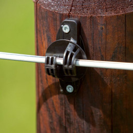 För att strömföra specifika befintliga icke-elektriska stängsel snabbt. Tillgänglig i två längder: 17,5cm och 40cm. Mycket lämplig för rep och band. Förborra hålet och fäst distanshållaren med en märla/krampa i trästolpen.