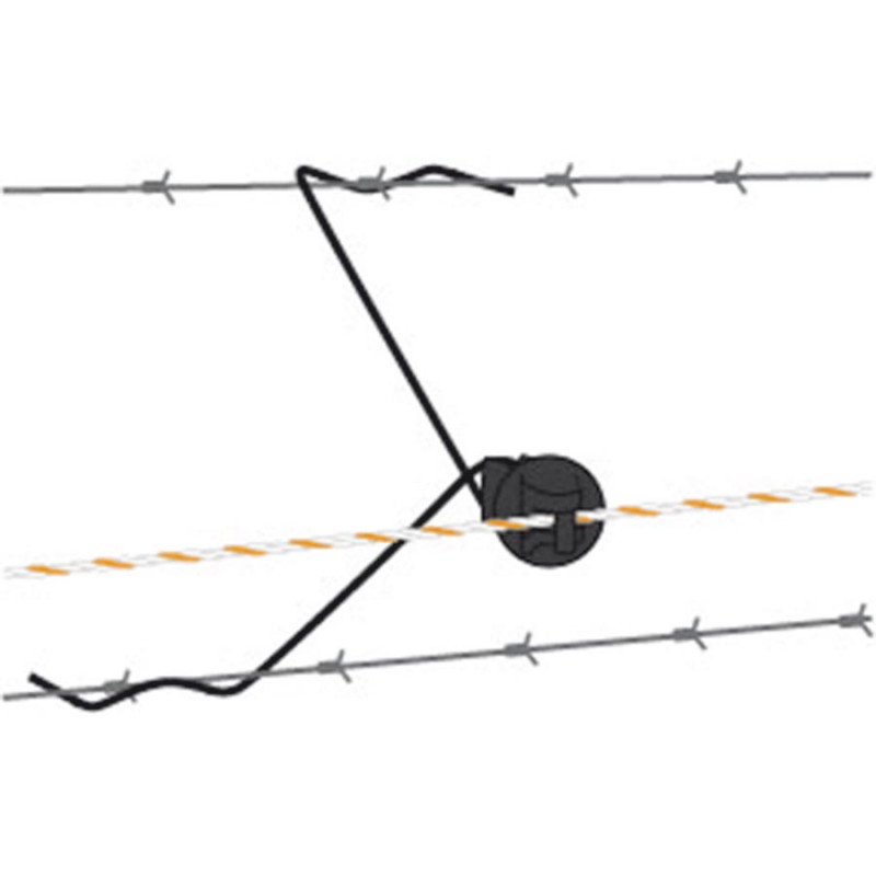 För att strömföra icke elektriska stängsel snabbt och effektivt. Isolator lämplig för rep och trådar upp till 9mm. Monteras på stålstolpar. Avstånd 20cm. (60mm gänga)