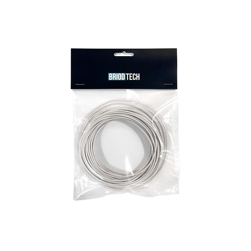 Plastisoliserad kabel RKUB 1 x 1,5 mm², tål 70°C. Fabrikat: Briod Tech. Säljs i butiksförpackning med 10 m kabel. Briod Tech-ryttare med påse.