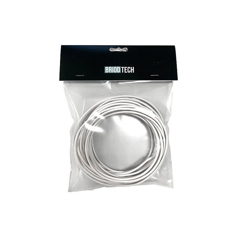 Plastisoliserad kabel RKUB 1 x 1,5 mm², tål 70°C. Fabrikat: Briod Tech. Säljs i butiksförpackning med 10 m kabel. Briod Tech-ryttare med påse.