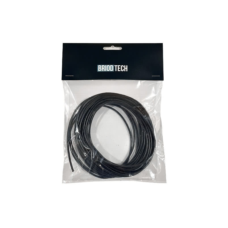 Plastisoliserad kabel RKUB 1 x 1,5 mm², tål 70°C. Fabrikat: Briod Tech. Säljs i butiksförpackning med 10 m kabel. Briod Tech-ryttare med påse.