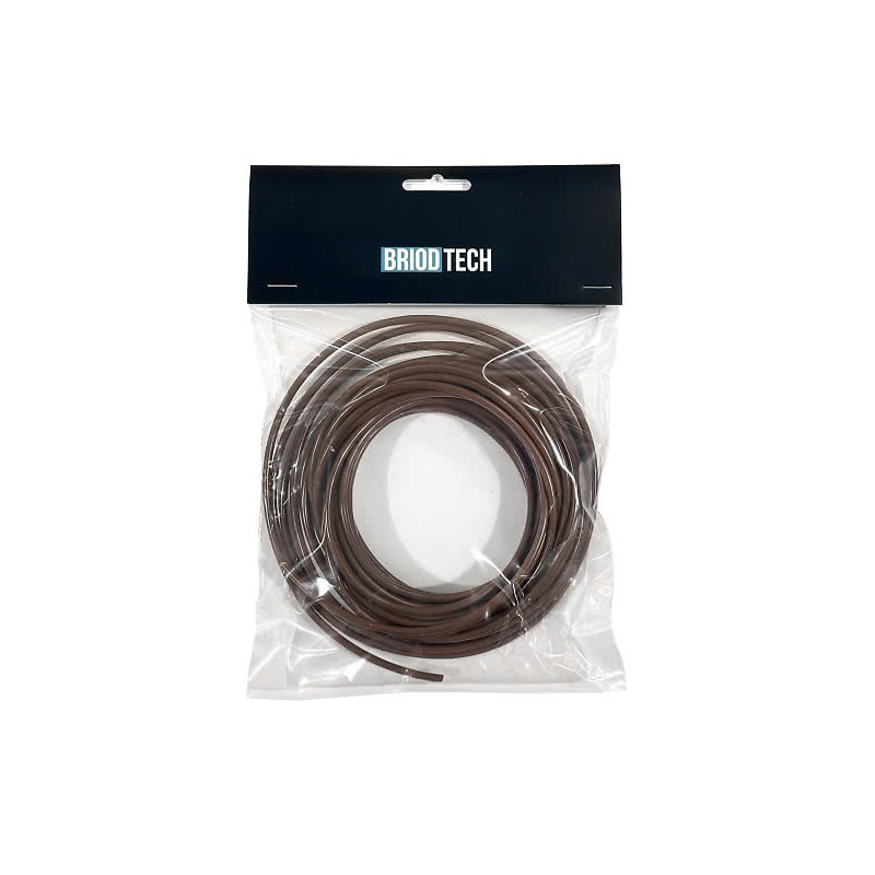 Plastisoliserad kabel RKUB 1 x 1,5 mm², tål 70°C. Fabrikat: Briod Tech. Säljs i butiksförpackning med 10 m kabel. Briod Tech-ryttare med påse.