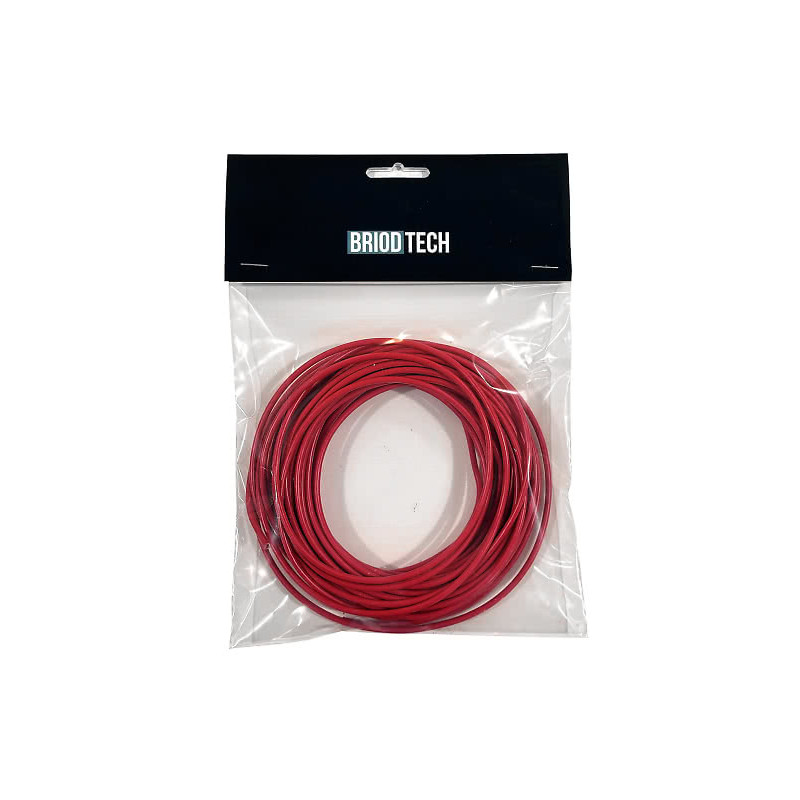 Plastisoliserad kabel RKUB 1 x 1,5 mm², tål 70°C. Fabrikat: Briod Tech. Säljs i butiksförpackning med 10 m kabel. Briod Tech-ryttare med påse.