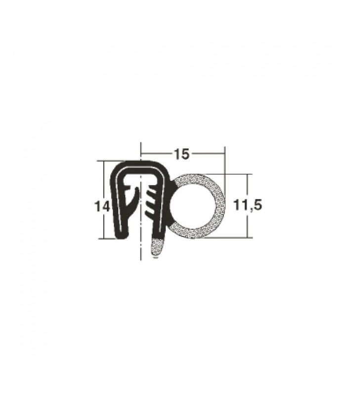 Tätningslist i EPDM för kantlist tjocklek 2-3,5 mm. Temperaturområde -40° till +70°C.