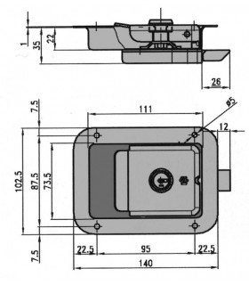 Mittlås, 174x109 mm tillverkat av svart PVC, för infällning, med nyckellåsning och avtätat nyckellock. Levereras med en nyckel.