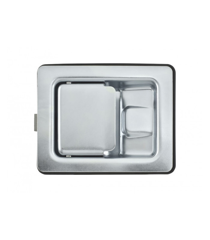 Mittlås, 174x109 mm tillverkat av svart PVC, för infällning, med nyckellåsning och avtätat nyckellock. Med pneumatisk styrning för centrallås-funktion och nödöppning. Levereras med en nyckel.