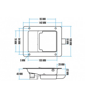 Mittlås, 174x109 mm tillverkat av svart PVC, för infällning, med nyckellåsning och avtätat nyckellock. Levereras med en nyckel.