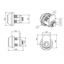 Mittlås, 174x109 mm tillverkat av svart PVC, för infällning, med nyckellåsning och avtätat nyckellock. Levereras med en nyckel.