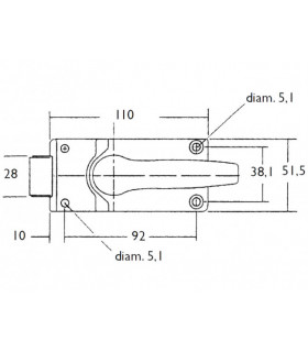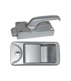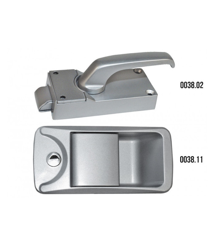 Klafflås 0038.11 i gjutet stål med en zinklegering för kombination med innerlås 0038.02 i samma material. En tapp förbinder dessa, längd beroende på paneltjocklek. För enklare montage och håltagning finns även en monteringsplatta. Låset levereras med nycklar. Delarna säljes separat.