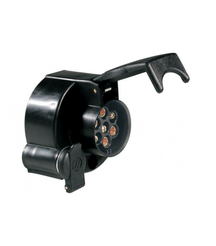 7-polig i plast för skruvanslutning. DIN ISO 1724. 3 fästhål. Sockeldiameter 70 mm. Kontaktdosa (3 stift, 4 hylsor). Säljs i butiksförpackning 1 st. Briod Tech-ryttare med påse.