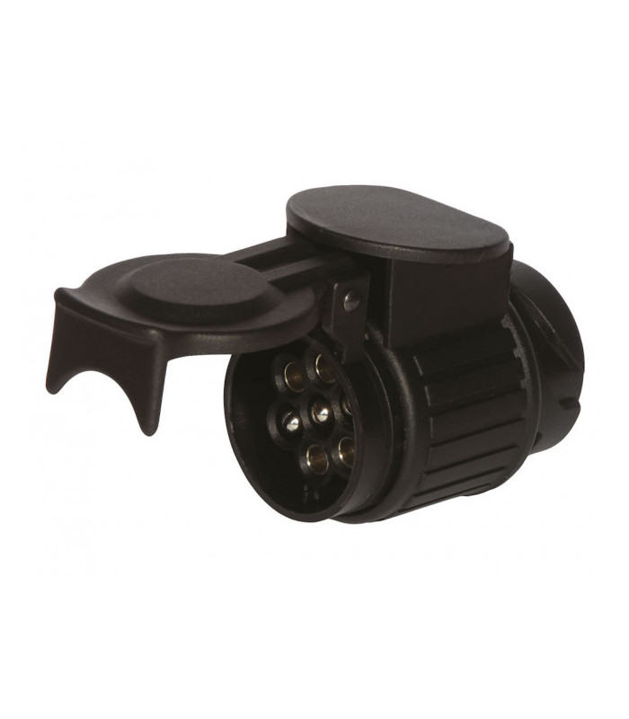 12 V. Tillverkad i slagtålig plast. 13-polig. Med bajonettfattning. (13 stift). Levereras med skruvbara kontakter. ISO nr 11446. Levereras i påse och ryttare för butik.