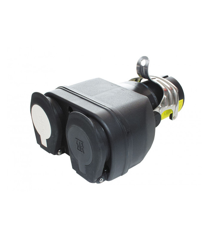 12 V. Tillverkad i slagtålig plast. 13-polig. Med bajonettfattning. (13 stift). Levereras med skruvbara kontakter. ISO nr 11446. Levereras i påse och ryttare för butik.