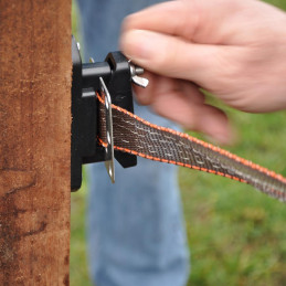 Trådspännare placeras på stängslet när du monterar det eller i efterhand. För att enkelt spänna upp tråden.