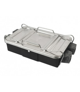 Av neopren i vattenskyddat utförande med transparent lock. Bestyckad med 8-polig kopplingsplint med skruvanslutningar. 4 kabelingångar. Kabelgenomföringar medföljer. Storlek 102 x 74 mm. Höjd 38 mm. Fabrikat: Rubbolite.