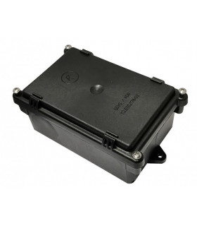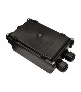 Av svart plast i damm- och vattentätt utförande. 12-polig kopplingsplint med 48 flatstiftsanslutningar. Välj mellan 4 st och 6 st kabelingångar. Kabelgenomföringar medföljer. Storlek 140 x 107 mm. Höjd 50 mm. Skyddsklass IP6K.
