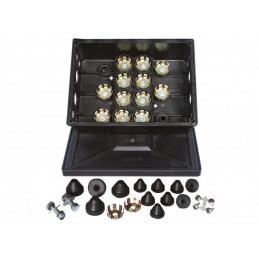Kopplingsbox av svart plast. Storlek 206 x 154 mm. Höjd 71 mm. 12-håls komplett box med gummigenomföringar och 12 st anslutningsplintar. Skyddsklass IP54. ADR-godkänd.