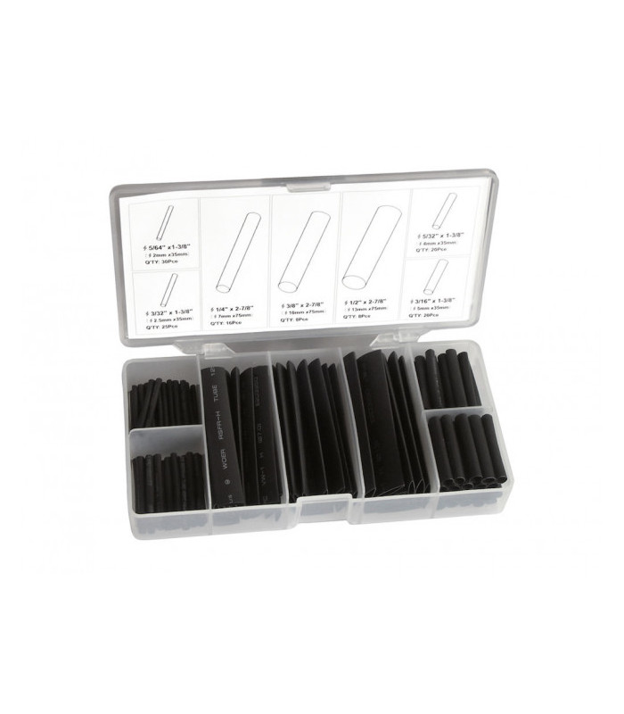 Ej limbelagd krympslang. Kompletteringsboxar. Svart. Krympning 2:1.