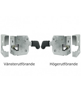 Lås med draghandtag. Med kåpa och monteringsbleck. Finns i utförande för höger och vänster.