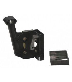 Hyttlås, höger, svartlackerat, inklusive monteringsbleck och skyddskåpa, med låsarm för nivåmekanism.
