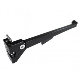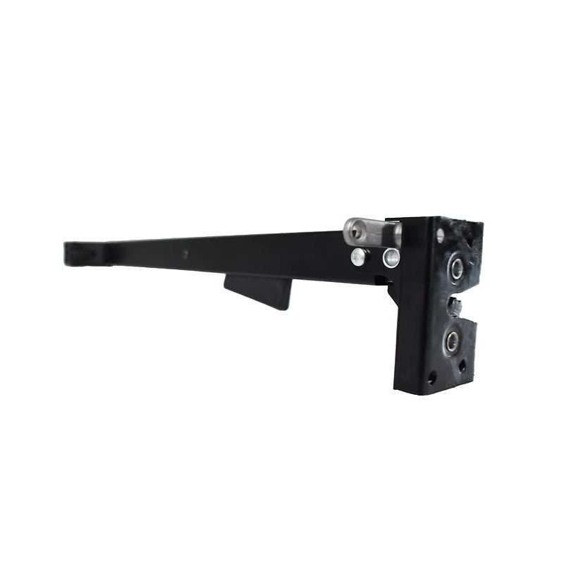 Hyttlås, höger, svartlackerat, inklusive monteringsbleck och skyddskåpa, med låsarm för nivåmekanism.