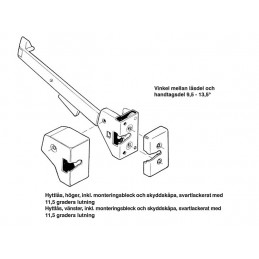 Lås med draghandtag. Med kåpa och monteringsbleck. Finns i utförande för höger och vänster.