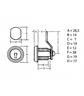 Låscylinder till stånglås 16 mm artikelnummer 39.020911647V och 39.020911647H.