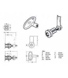 Låscylinder till stånglås 16 mm artikelnummer 39.020911647V och 39.020911647H.