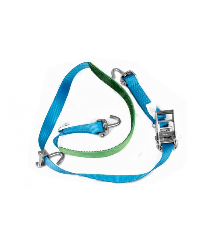 Spännband Large Pro 2-delad med enkelkrokar för skena. Kortdel: 1 m med flat enkelkrok för skena. Långdel: 3 m med flat enkelkrok för skena. LC: 750daN.