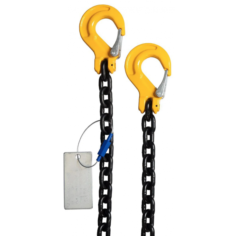 Kortlänkad surrningskätting i klass 8 kvalitet, komplett med spärrkrok i båda ändar. Uppfyller kraven enligt SS-EN 12195-3. Längd: 3,5 m. Färg: Svart/gul. Packade 1 st i hink.