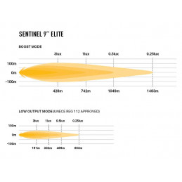 Lamporna avger 15232 råa lumen och ger 1 lux på 742 m, men det är i den 52-gradiga horisontella spridningen av ljuset och synligheten vid sidan av vägen eller banan på medellångt till långt avstånd som Sentinel Elite verkligen kommer till sin rätt. Som alla Lazer-produkter är färgtemperaturen på behagliga 5000 K behaglig för ögat, samtidigt som den maximerar skärpan och definitionen av objekt framför dig. Lampan är UNECE-godkänd enligt föreskrift ECE149 som helljus, genom användning av Lazers E-Boost-teknik med dubbla ljusflöden; lampan styrs genom att snabbt blinka av/på och kan snabbt dimmas för att undvika bländning när man t.ex. passerar vägskyltar (flash-to-dim), eller när som helst programmeras för att alltid fungera i lägena med högt eller lågt ljusflöde, där läget med lågt ljusflöde uppfyller kraven i UNECE:s föreskrift ECE149 som helljus på väg.