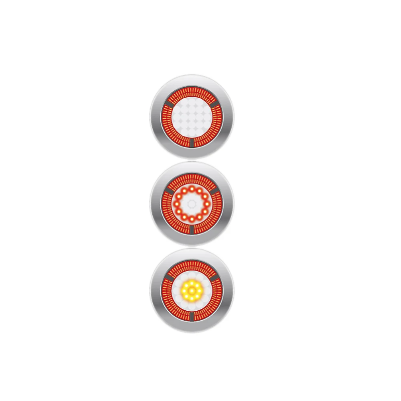 Kvalitetssäkra LED baklampor med dekorativ kromring som är framtagna för ett tufft skandinaviskt klimat. Lamporna är vattentäta och klara för montering. Baklamporna har inbyggnadsmontering. Diameter 113 mm och en ytterdiameter på 155 mm. 24 V. Levereras med 2,5 m kabel. E-märkt, IP-klass: 68, helt förseglad. Lamporna med bak- och blinkersfunktion har ett stegrande/flytande blinkmönster.