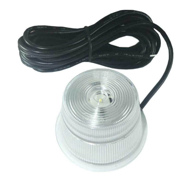 Positionslampa LED 64 mm med en diod, reservglas i polykarbonat, 5 m kabel. Lampan är vertikalt räfflad kring ytterhöljet. E-märkt. Vit, orange eller röd. Ingen returrätt