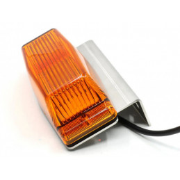 Sidomarkeringsljus med 110 mm lång gummiarm, täcklock och orange glas. 5 st. högintensiva LED-dioderplacerade i en rak linje. Komplett med 5 meters kabel. Typgodkänd med E-märkning.