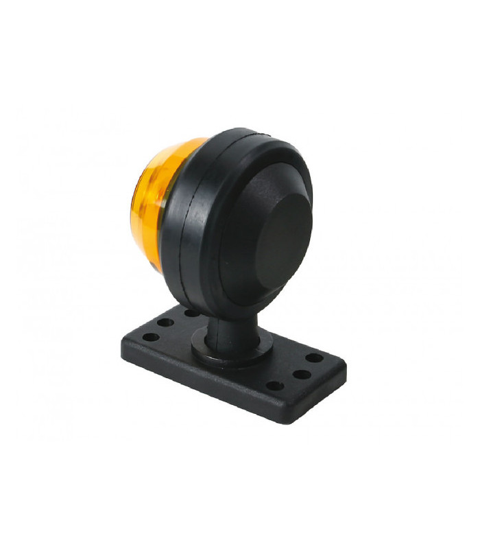 Sidomarkering/positionslampa LED 24 V. På kort gummiarm (110 mm) med 1 st glas. Orange, rött eller vitt. 5 meter kabel. Lampan monteras 90° mot bilens färdriktning. OBS! Kabeln får ej kapas närmre lykthuset än 50 cm.