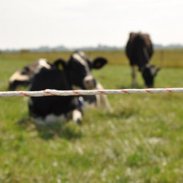 Den säkraste lösningen för din häst. Unika elektriskt ledande polymer (i svarta remsor) som kan användas som tråd i elstängsel. I kombination med stängselfjädrar ger den maximal säkerhet för hästar. Total diameter ø8mm med en kärna av ø2.5mm höghållfasthetstråd.Specifikationer- Diameter mm: 7,5- Mot