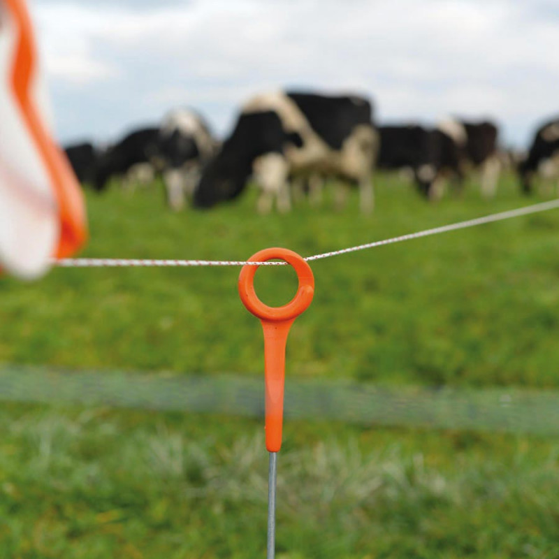 Galvaniserad stängselwire med hög ledningsförmåga. 7 trådar, för långa tillfälliga stängsel som påverkas av vegetation. För användning i stängsel för Kor, får och vild. Spolar med 200m och 400m.
