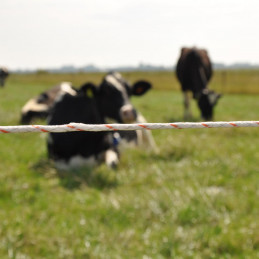 12,5mm TurboLine band. De vågräta trådarna är sammankopplade i intervall om 13 cm för att ge bättre ledningsförmåga. 40 gånger större ledningsförmåga än vanligt PowerLine band. Idealiskt för portabla elstängsel. Stolpavstånd upp till 5m. Spolar med 200m och 400m. Använd alltid TurboLine-produkter om