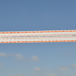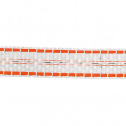 Tydligt, väl synligt PowerLine band med en svart kant som gör bandet starkare. Idealiskt för halvpermanenta häststängsel. 5 rostfria ståltrådar och en mixmetall tråd för god ledningsförmåga. Stolpavstånd upp till 5m.Specifikationer- Bredd / Diameter mm: 20- Antal rostfria trådar: 5- Antal förtenta k