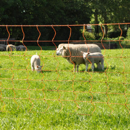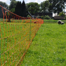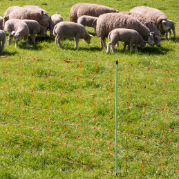 Komplett och enkelt att använda bärbara nät för får och lamm. Om betesmarken gränsar till diken, erbjuder näten även de nyfödda lammen maximal säkerhet. Längd: 50m. Inklusive 14 stolpar med enkel eller dubbel spets, monterade i nätet. Det är enkelt att ansluta flera nät tillsammans.
