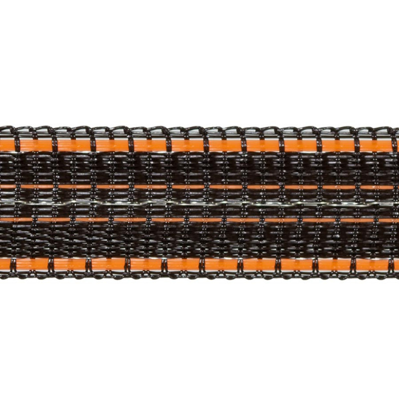 Tydligt, väl synligt PowerLine band med en svart kant som gör bandet starkare. Idealiskt för halvpermanenta häststängsel. 11 rostfria ståltrådar och 1 mixmetall tråd för god ledningsförmåga. UV-beständigt. Stolpavstånd upp till 4m.Specifikationer- Bredd / Diameter mm: 40- Antal rostfria trådar: 11-
