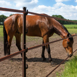 Den säkraste lösningen för din häst. Unika elektriskt ledande polymer (i svarta remsor) som kan användas som tråd i elstängsel. I kombination med stängselfjädrar ger den maximal säkerhet för hästar. Total diameter ø8mm med en kärna av ø2.5mm höghållfasthetstråd.Specifikationer- Diameter mm: 7,5- Mot