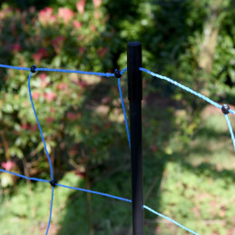 Komplett och enkelt att använda bärbara nät för getter och lamm. Om betesmarken gränsar till diken, erbjuder näten även de nyfödda lammen maximal säkerhet. Längd: 50m. Inklusive 14 stolpar med enkel eller dubbel spets, monterade i nätet. Det är enkelt att ansluta flera nät tillsammans.